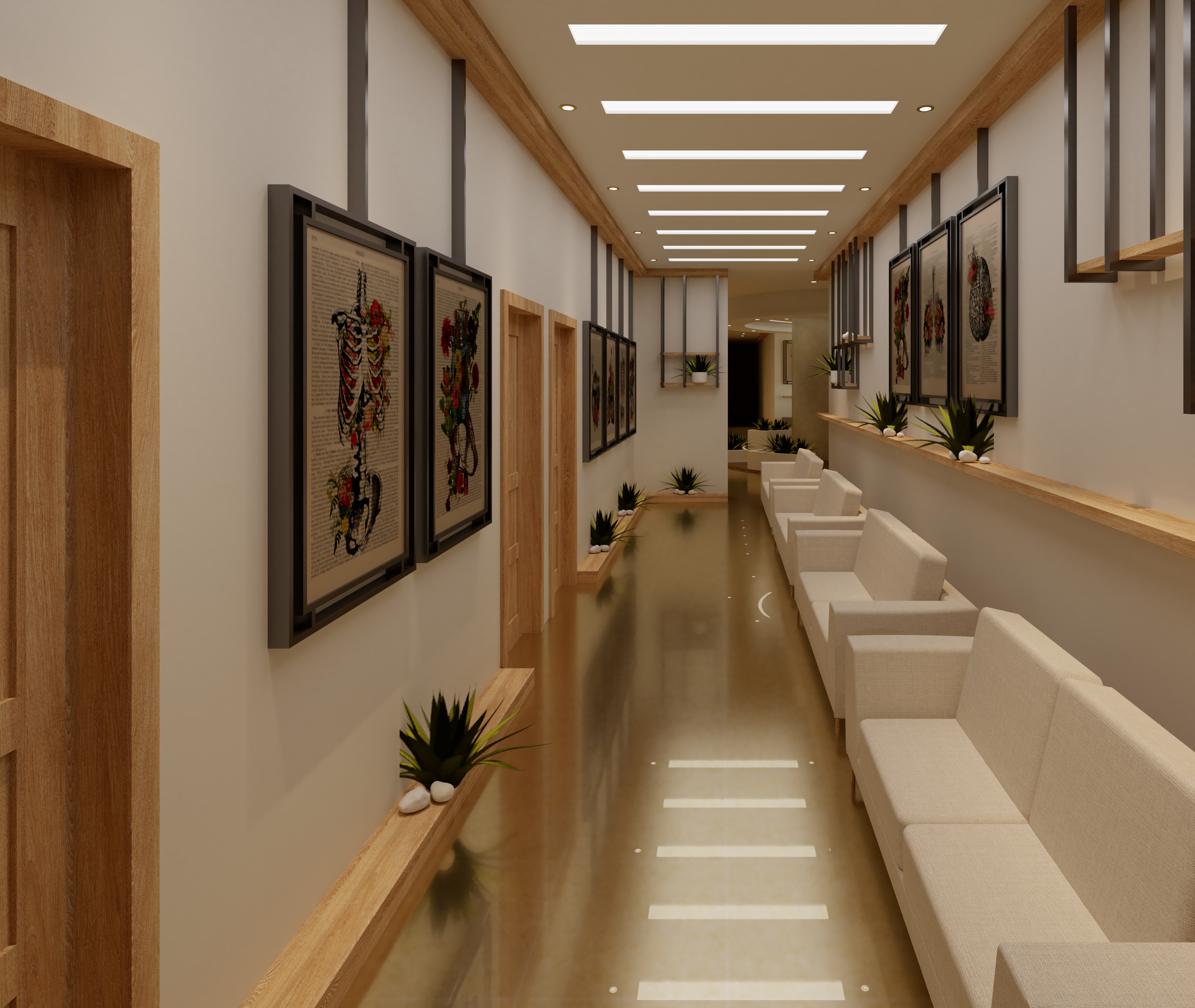 Poly-Clinics a healthcare project featuring a design that aims to ensure ultimate comfort & relaxation for patients. The clinics are divided to ordinary clinics & VIP Clinics. The waiting area & clinics comprise common finishing materials giving the project its uniqueness & harmony.